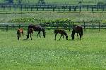 ●●● 苫小牧から襟裳岬までの国道235号沿いには、いたるところに競走馬の牧場が広がっています。サラブレッドの子馬達は母親のそばを離れることはありません。(2001.7.9.) |