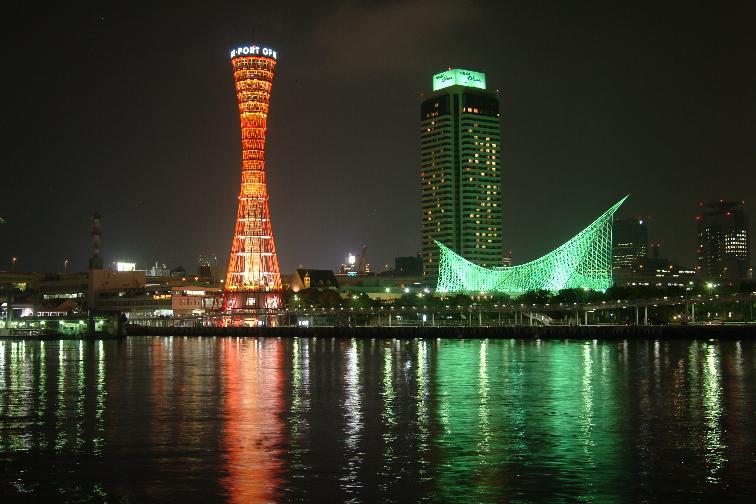 ■ 今日は神戸・ハーバーランドにやってきました。目の前にポートタワーやホテルの灯りが色とりどりに輝いています。震災後のピカピカ・キラキラの神戸です。昼間の写真は次回訪問の宿題です。(2004.5.10.) |
