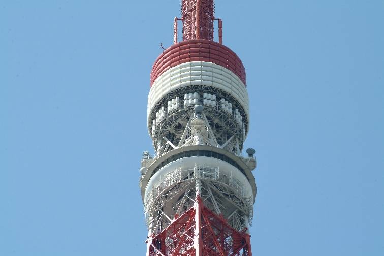■ 1958年開業、高さ333メートルの東京タワー 。1年以上もかけて行なわれた塗装工事が終わって、青空に赤が鮮やかです。工事の足場もやっとなくなりました。 |